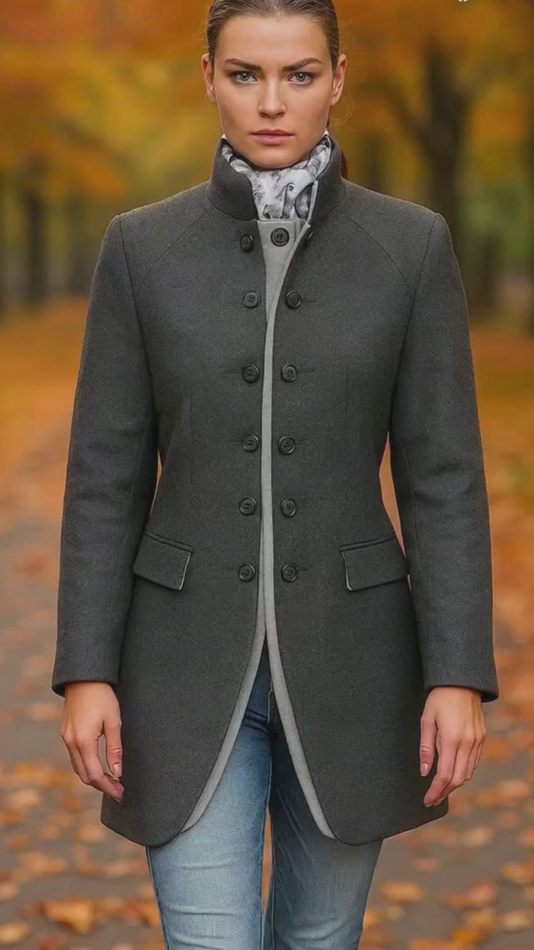 Women's Military Coat - Grey (Light Grey Accents)